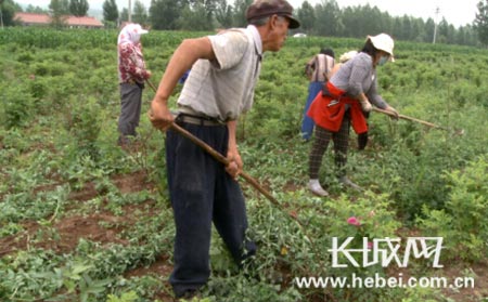 当地村民正在给玫瑰培土。 长城网 宁晓雪 摄