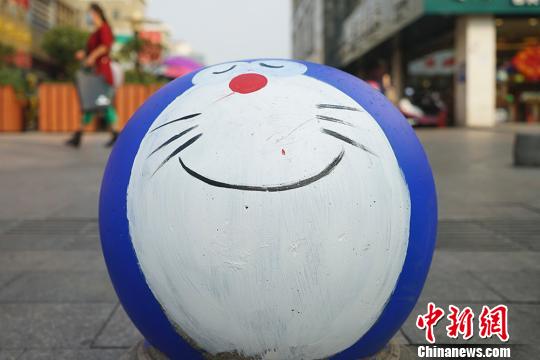 “蓝胖子”萌萌哒现身南京街头。 王瑞 摄