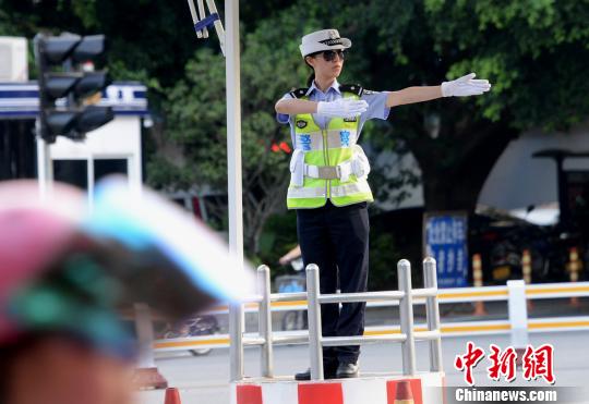 女交警上岗执勤英姿飒爽。 刘可耕 摄
