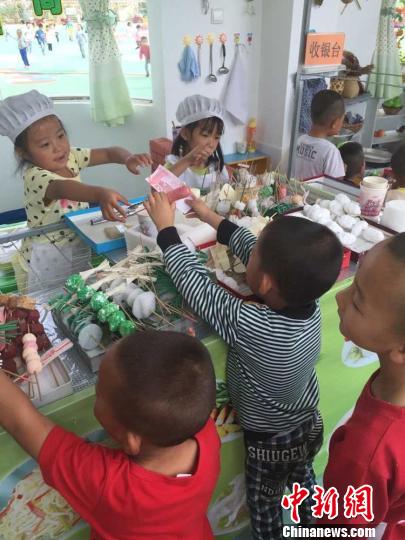 孩子们在“烧烤摊”购买美食。 崔琳 摄
