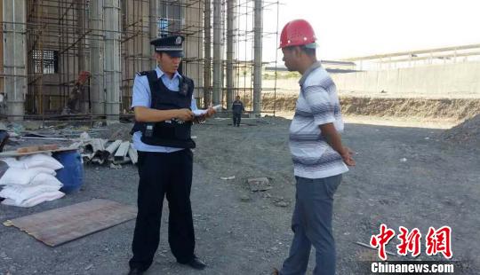 31日,吐鲁番北站派出所民警在施工工地开展安全隐患检查。 田祥云 摄