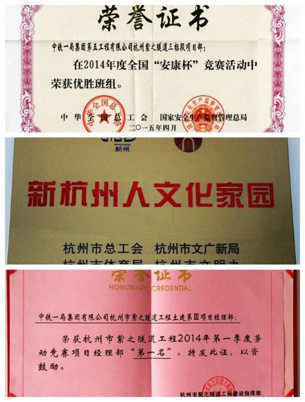 杭州紫之隧道开工建设2年多来,项目部荣获“全国安康杯优胜班组”、“新杭州人文化家园”等荣誉,多次获得劳动竞赛第一名,也获得多项国家级专利,实现了社会效益、经济效益、人才效益多丰收。(姚星)