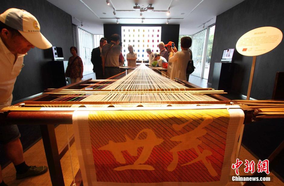 云锦版《蒙娜丽莎》、龙袍、色釉器具、珐琅彩……9月5日,曾亮相米兰世博会南京周的云锦高端精品在德基广场户外亮相,现场有云锦大师在织机上现场演示,让南京市民近距离体验从世博舞台载誉归来的云锦《蒙娜丽莎》、云锦华服等创新艺术精品,感受非遗魅力。李珂 摄