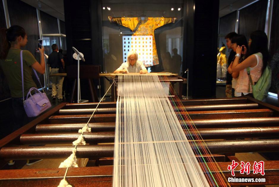 云锦版《蒙娜丽莎》、龙袍、色釉器具、珐琅彩……9月5日,曾亮相米兰世博会南京周的云锦高端精品在德基广场户外亮相,现场有云锦大师在织机上现场演示,让南京市民近距离体验从世博舞台载誉归来的云锦《蒙娜丽莎》、云锦华服等创新艺术精品,感受非遗魅力。李珂 摄