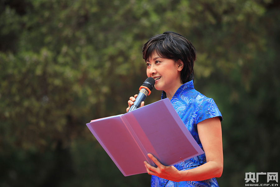图为演员朱琳朗诵《四季读书歌》。(央广网记者 韩靖摄)
