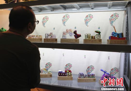 图为使用3D技术打印的重庆方言雕塑吸引市民眼球。 周毅 摄