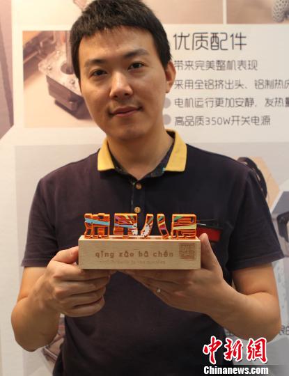 图为工作人员展示使用3D打印机制作而成的重庆方言雕塑。周毅 摄