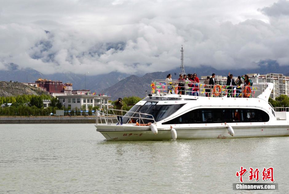 9月12日,拉萨河水上旅游项目在该市新落成的滨河公园内正式启动,至此拉萨市实施河变湖工程取得了阶段性成果,同时也揭开了拉萨市发展旅游文化产业的序幕。图为拉萨河中行驶的游船与远处的布达拉宫交相辉映。 李林 摄