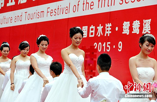 图为新郎单膝跪地、亲吻新娘手背。 吕巧琴 摄