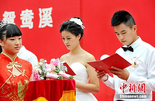 9月13日,素有“亲水天堂”之称的福建宁德市屏南县白水洋水上广场举行水上集体婚礼,20对来自中国各地的新人,水上喜结连理。当天,第五届宁德世界地质公园文化旅游节在此开幕,水上集体婚礼作为活动之一举办,为文化旅游节平添了一份浪漫与喜庆。