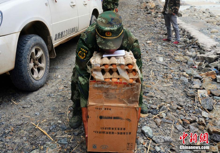 边防官兵为辖区群众搬运整箱鸡蛋。 彭新程 摄