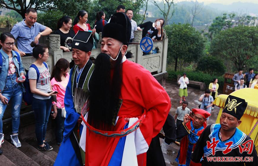 安居古城是集古县城文化、巴渝文化、宗教文化、书香文化、移民文化、抗战文化和龙文化于一体的千年古城。现在为了保留传统文化底蕴,更是为了吸引来古城旅游的客人们,每天“安居县令”都会开城门出来巡视一圈。(中工网记者  毛邓摄)