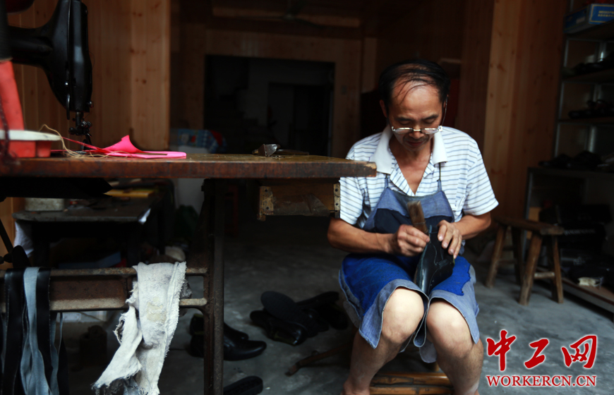 李师傅是老城里最有手艺的皮鞋匠,自己画图,搓皮定模,定线胶合,一双巧手打造几十年手工皮鞋的老招牌,虽然现在能去商场购物了,但是老城里的邻里街坊的老人喜欢李师傅定做的皮鞋,虽然一年到头也没能卖出去多少算,但李师傅说不能让自己闲着,不然以后就没人知道我的手艺有多好了。(中工网记者 毛邓摄)