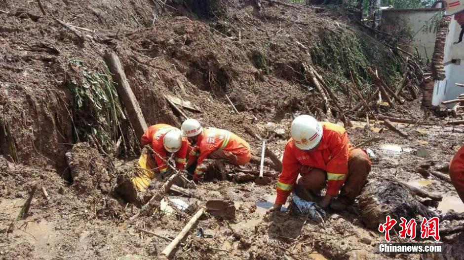 9月16日凌晨至中午,云南省保山市昌宁县出现特大暴雨,引发泥石流灾害。截止目前,已致2人死亡,5人失联。灾情发生后,当地政府迅速组织相关部门抢险救灾。目前,受灾民众已转移到安全区域,食品、卫生等生活用品已经陆续运达安置点。图为消防官兵进行救援。 中新社发 钟欣 摄