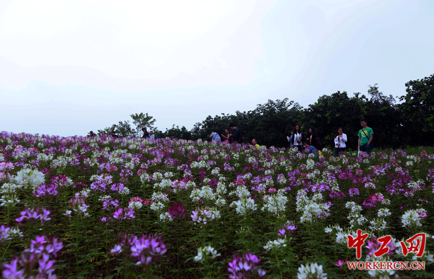 目前,正与巴岳山玄天湖度假区其他组团一道,共同创建国家4A级景区、市级旅游度假区、全国生态旅游示范区。花海核心区目前正在提档升级中,新增休闲廊亭、立体花卉、花海酒店、滑草、溜坡球等休闲娱乐项目,将在今年国庆节开园一周年之际以崭新的面貌恭迎八方宾客。图为来自全国重点网络媒体的记者被路边的花海吸引,纷纷拍照留影。(中工网记者 毛邓摄)