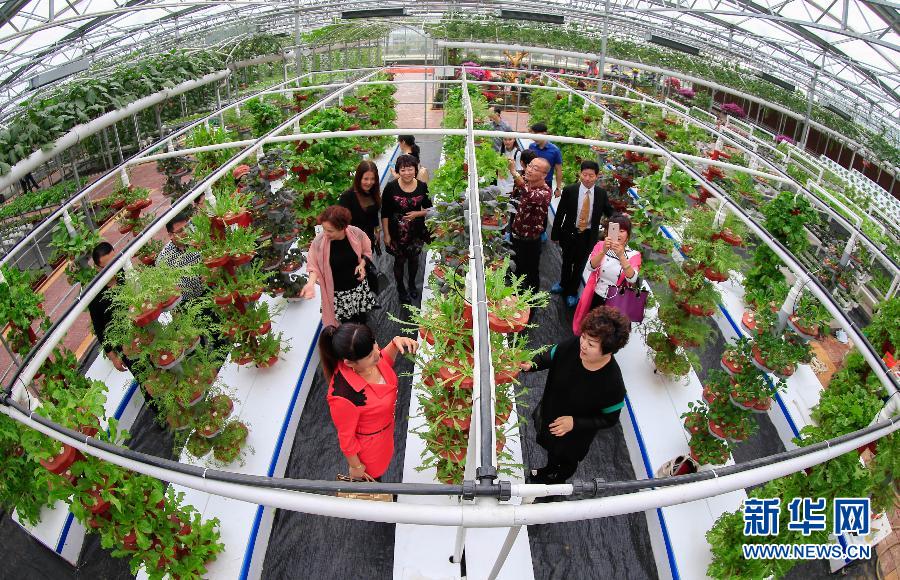 10月7日,游客在江苏省盱眙县澳吉尔国际绿博园参观。国庆长假,江苏淮安首家现代农业科普园澳吉尔国际绿博园成为喜欢“近郊游”居民放松身心的新去处。该园采用智能化温室,以盆式、墙式、床式、环形、管式、柱式等新型栽培技术,培育特色的瓜果、花卉及蔬菜。游人到此,可置身花果香气之中,即可观赏新型的农业科技,还可以采摘品尝新鲜的农产品。新华社发(周海军 摄)
