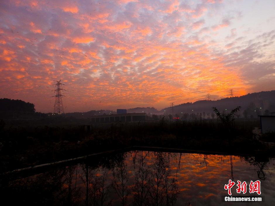 10月14日18时30分,贵阳天空出现“火烧云”景象,给城市带了别样的风景。 中新社记者 张晖 摄