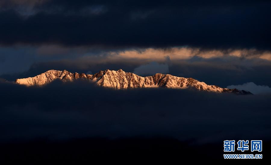 10月16日,云南梅里雪山在朝阳的照射下显得美丽而神秘。云南梅里雪山是世界自然遗产“三江并流”的主要景观之一,常年笼罩在雪幕和云层里。清晨,阳光照在雪山顶上,形成绝美的“日照金山”奇观。梅里雪山的山峰气势磅礴、形态各异,吸引各地游客前来观奇揽胜。新华社记者 蔺以光 摄
