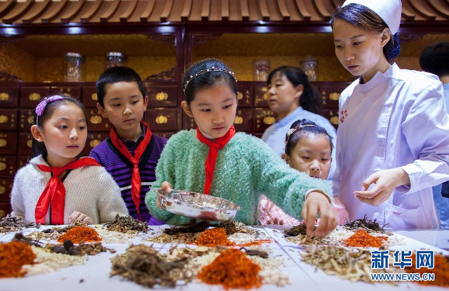 10月22日“世界传统医药日”即将来临,呼和浩特市通顺街小学开展“认识中草药、体验中医文化”主题课外实践活动。学生们来到中医院,在医师的指导下认识中草药,观摩体验抓药、捣药、把脉等,感受中医药文化的魅力。新华社发(丁根厚 摄)