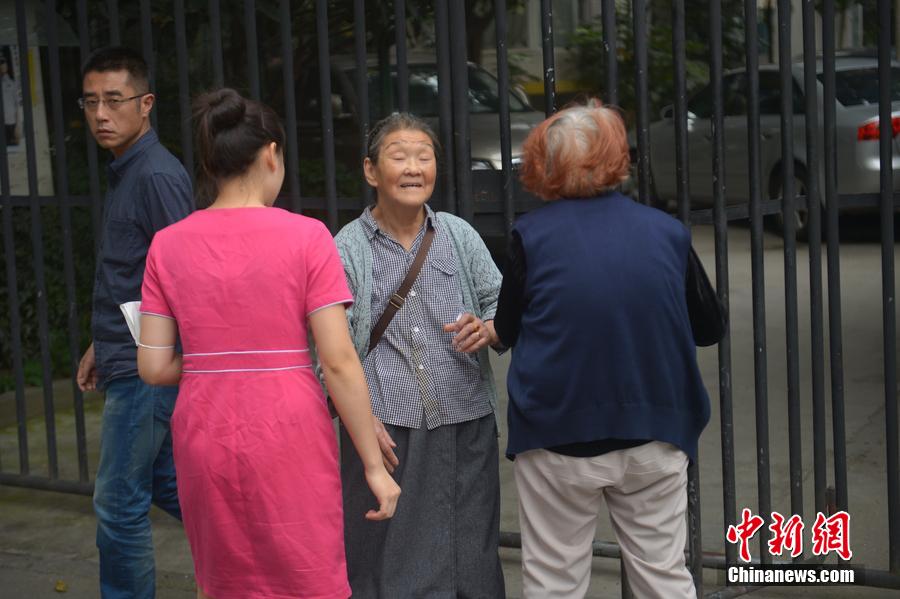 图为2015年10月19日,四川省成都市,时间接近9点,唐陵进校门后如期见到老同学,众人三三两两结队走进学校报告厅。郝飞 摄 图片来源:视觉中国