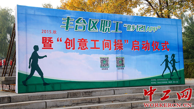 2015年10月16日下午,丰台区职工健步走暨创意工间操启动仪式在青龙湖公园举办。活动倡议广大职工走出去、动起来,以“绿色出行、绿色丰台,健步足迹、绿色生活”的健康生活方式来缓解工作压力,增强生活幸福感。中工网记者 葛姗 摄