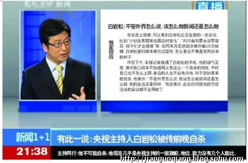 白岩松 被死亡时间:2009年10月26日 2009年10月27日,网上突然多了条新闻:“中央电视台节目主持人白岩松昨晚突然自杀,原因不明。北京警方正在调查。”让白岩松哭笑不得。