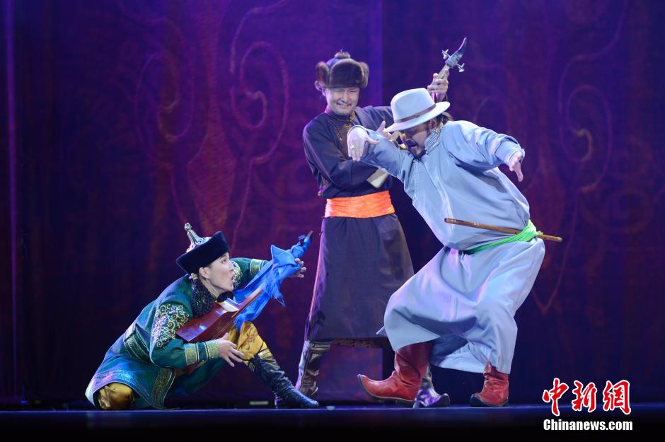 图为新疆巴音郭楞蒙古自治州歌舞团表演群舞《托布秀尔萨吾尔登》。 中新社记者 刘文华 摄