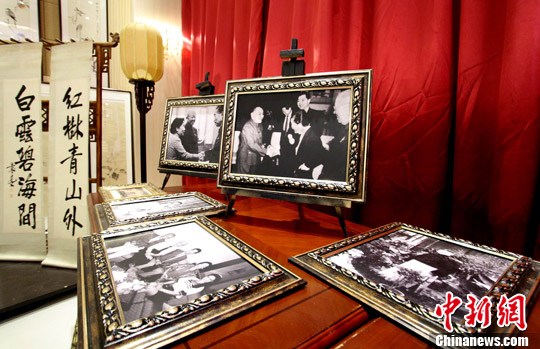 图为袁克文故居内展出的袁氏家族和国家领导人的合影。中新社记者 张道正 摄