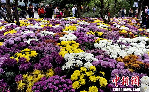 7万盆菊花争奇斗艳,呈现花海壮美景象。 刘可耕 摄