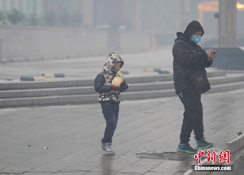 11月8日时值农历“立冬”,吉林省长春市迎来今冬首次降雪,伴随而来的还有严重的空气污染。气象部门接连发布了霾橙色预警和道路冰雪黄色预警。8日晚间,吉林省内多个高速路段因路面结冰关闭。气象部门预测未来24小时,吉林省东南部将有大到暴雪。张瑶 摄