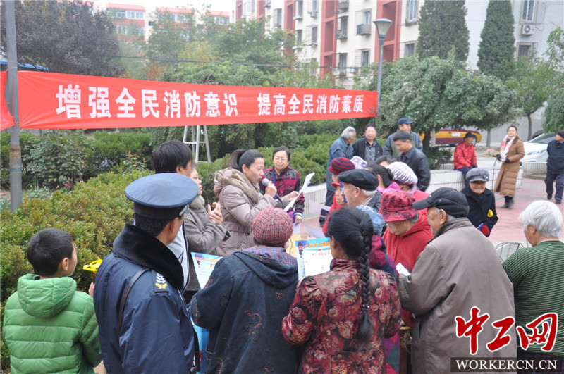 11月9日当天,天气阴冷,中建一局安装公司安全保卫部、社会部和党群工作部及社区居委会相关人员来到大兴区滨河西里小区,组织小区职工家属开展“119消防日”系列活动,旨在增强居民的消防意识,普及消防安全知识,提高全民消防素质。