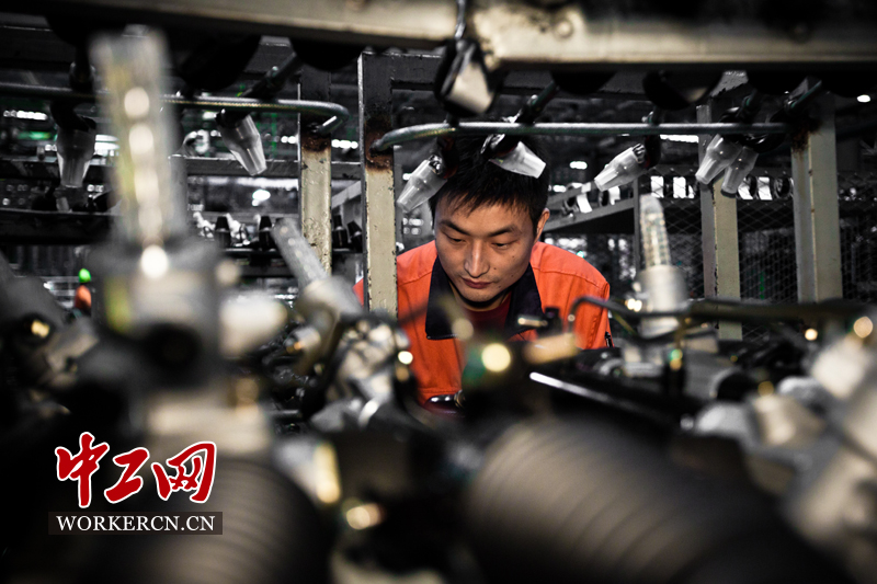 图为吕义聪研究汽车零部件。 中工网记者 李雪峰 摄