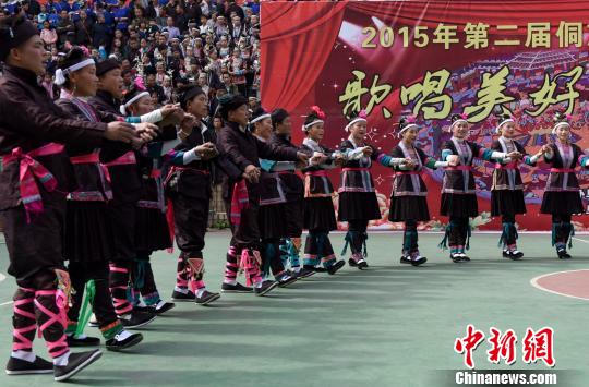 11月22日,广西三江侗族自治县举办“歌唱美好新三江”侗族多耶大赛,来自该县各乡镇的25支代表队同台献艺,竞展风情,以自编自演的耶歌传唱民族团结与侗乡巨变。 龚普康 摄