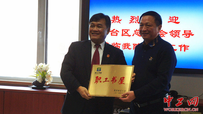 图为丰台区总工会主席王建斌为丰台法院职工书屋授牌。中工网记者 葛姗 摄
