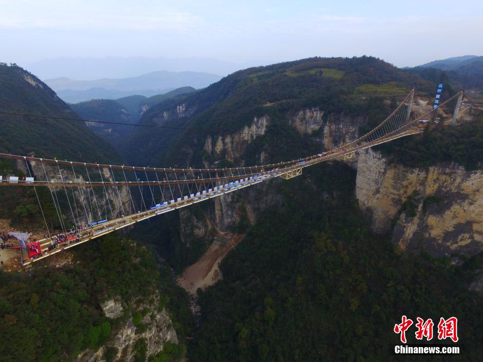 张家界大峡谷玻璃桥合龙 创多项世界之最