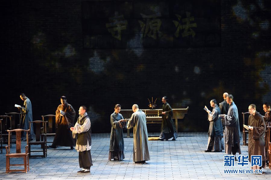 12月6日,演员在表演话剧《北京法源寺》。当日,由田沁鑫编导、国家话剧院演出的话剧《北京法源寺》在北京天桥艺术中心上演。