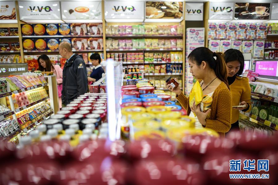 12月7日,顾客在前海周大福全球商品购物中心挑选食品。当日,深圳前海周大福全球商品购物中心(前海港货中心)开始试营业。该购物中心以“港资建设、港企运营、港人收益”为宗旨,打造国际零售业创新文化以及深港合作高端消费体验中心,为内地市民提供香港和国外商品,同时吸引香港零售商,特别是香港中小企业到前海经商。据了解,该购物中心运营模式为“保税展示”和“跨境电商”双线并行,售价贴近香港价格,商品类别包括珠宝、手表、奶粉、食品、药品等。新华社记者毛思倩摄