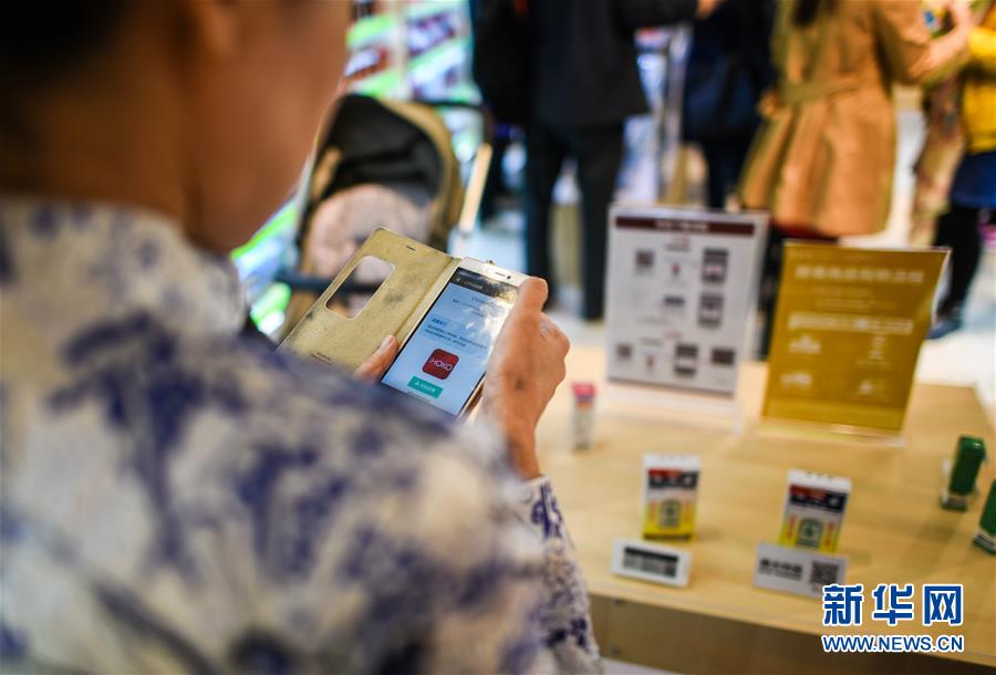 12月7日,在前海周大福全球商品购物中心的一家药店,顾客准备扫码购物。当日,深圳前海周大福全球商品购物中心(前海港货中心)开始试营业。该购物中心以“港资建设、港企运营、港人收益”为宗旨,打造国际零售业创新文化以及深港合作高端消费体验中心,为内地市民提供香港和国外商品,同时吸引香港零售商,特别是香港中小企业到前海经商。据了解,该购物中心运营模式为“保税展示”和“跨境电商”双线并行,售价贴近香港价格,商品类别包括珠宝、手表、奶粉、食品、药品等。新华社记者毛思倩摄