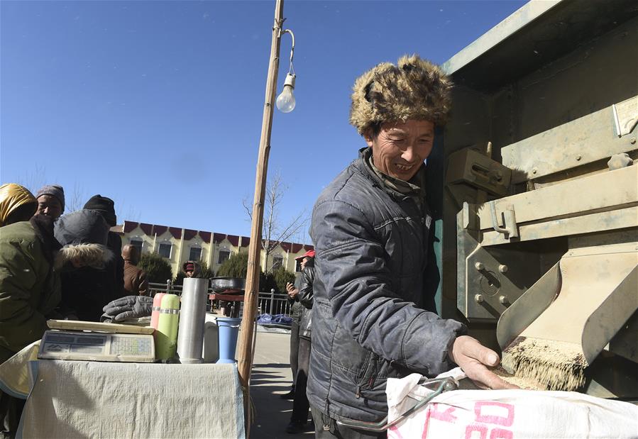 2015年12月3日 12月3日,沁县口头村村民在加工小米,当地7户村民结伴来出售了1万多斤谷子。 新华社记者燕雁摄