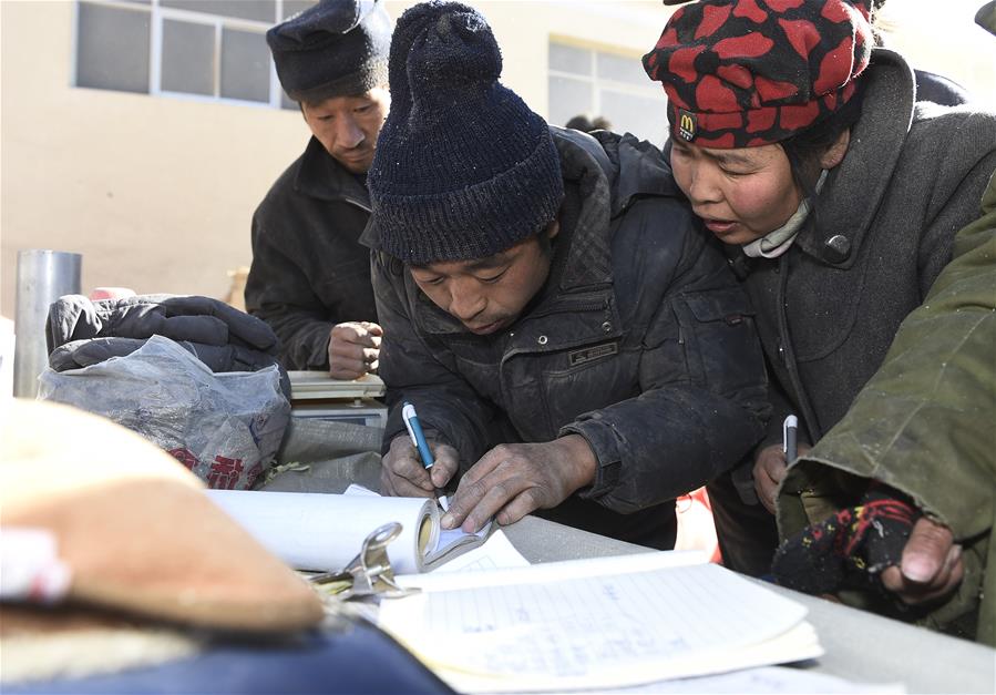 2015年12月3日 12月3日,“沁州黄”种植户在卖粮登记单上签字。 新华社记者燕雁摄