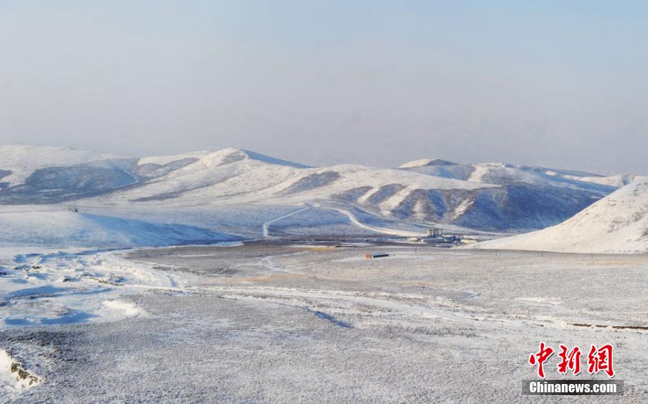 冬日祁连山显雪域牦牛如“画卷”