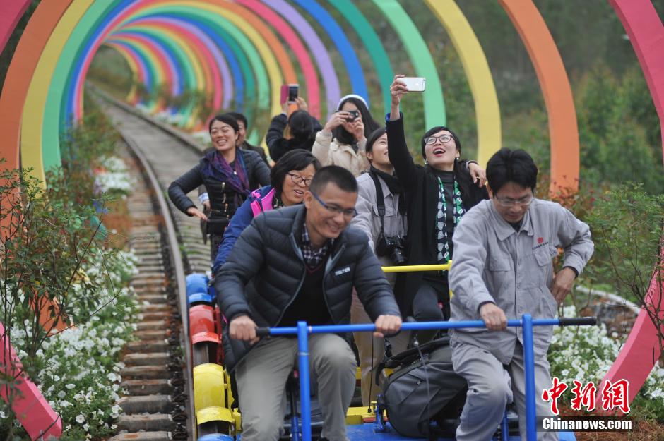 广西废弃铁路披“彩妆” 变身爱情隧道吸引游人