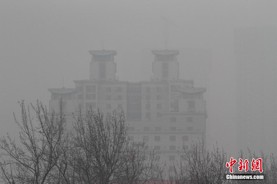 雾霾笼罩中的天津,一处高楼宛若空中楼阁。 中新社记者 张道正 摄