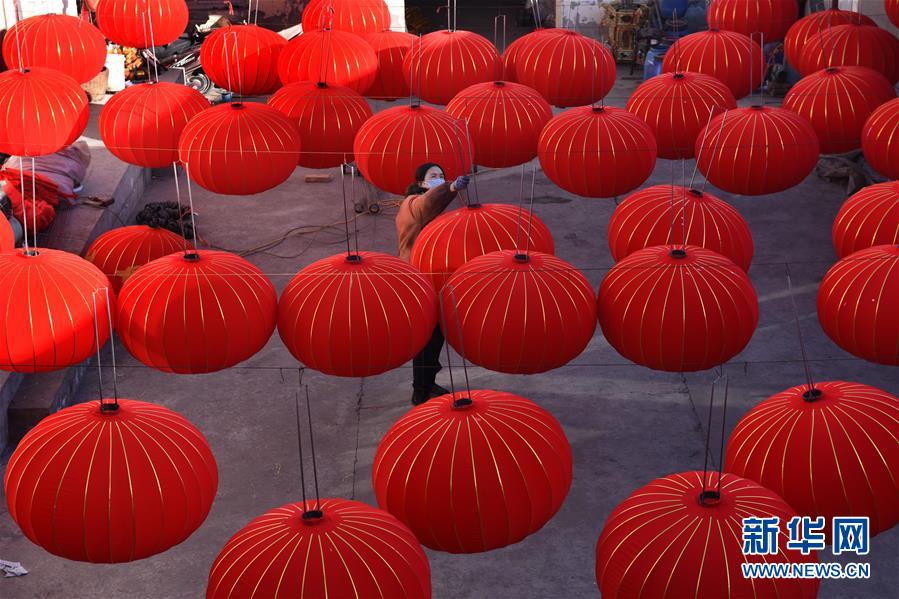 12月15日,在山西省运城市稷山县杨赵村灯笼产业园内,工人们在晾晒大红灯笼。随着元旦和春节临近,山西省运城市稷山县杨赵村迎来灯笼的销售黄金季。当地村民在继承传统制作工艺的基础上,不断创新灯笼设计,增加灯笼品种,使加工的灯笼畅销全国各地。新华社发(栗卢建 摄)