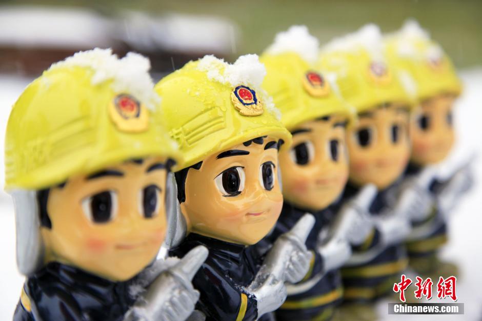 12月16日,春城昆明迎来今冬首场降雪,云南省公安消防总队官兵拍创意照片卖“萌”,画风可爱至极。 高伟鑫 摄