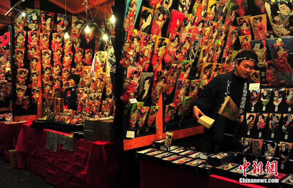 时值岁末,东京老街区浅草一年一度的“羽子板市”12月17日开张,兜售传统年节饰品羽子板。中新社记者 王健 摄