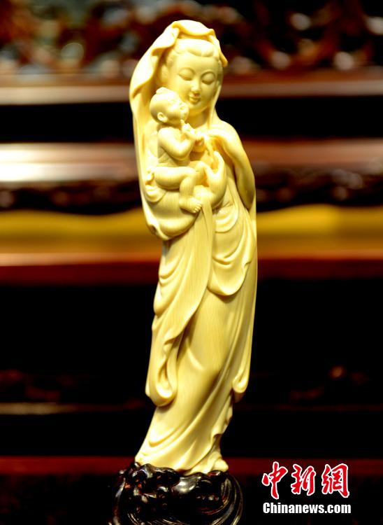 牙雕精品《送子观音》栩栩如生。 中新社记者 刘可耕 摄