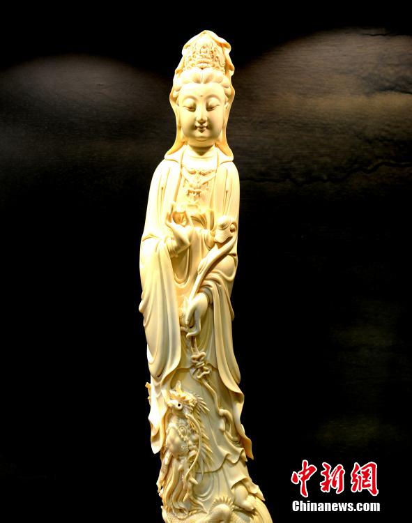 牙雕精品《如意观世音》。 中新社记者 刘可耕 摄