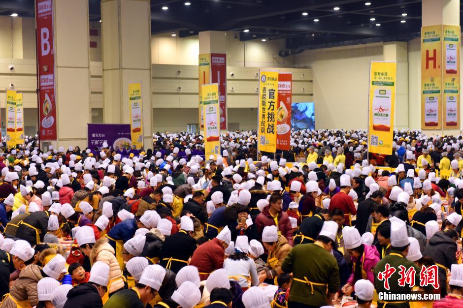 12月20日,河南郑州国际会展中心,7000余人同时包饺子,并通过视频同步听取了一堂烹饪课,创下“最大规模烹饪课暨最多人包饺子”吉尼斯世界纪录。包饺子挑战以家庭为单位,大人和孩子共同参与,其中年龄最大的70多岁,最小的4岁。经过40多分钟的激烈挑战,正式参赛的7000多名选手中,共计通过挑战的有效人数为6334人,成功打破了之前“最大规模烹饪课暨5448人共同包饺子”的吉尼斯世界纪录。