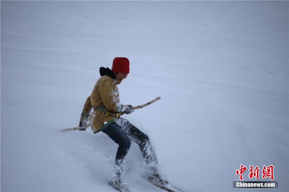 呼和浩特迎降雪 民众武装出行